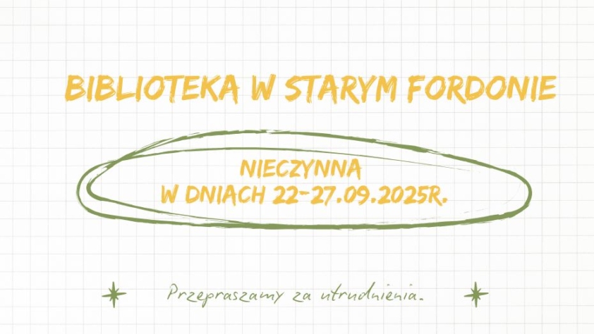 Informujemy, że w dniach od 22-27.09.2025 roku Biblioteka w Starym Fordonie / …