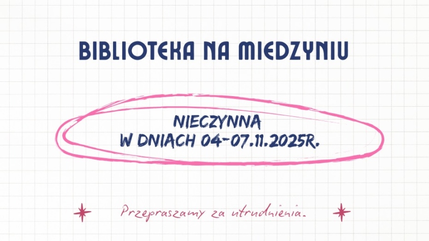 Informujemy, że w dniach 04.11-07.11.2025 roku Biblioteka na Miedzyniu – Filia nr…