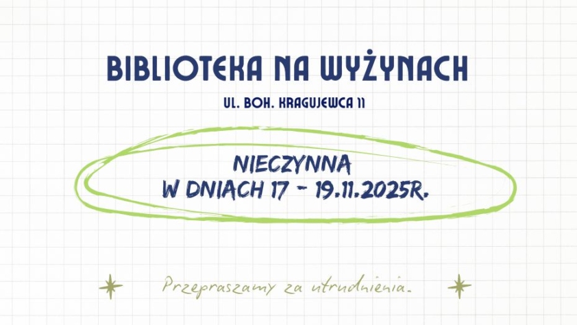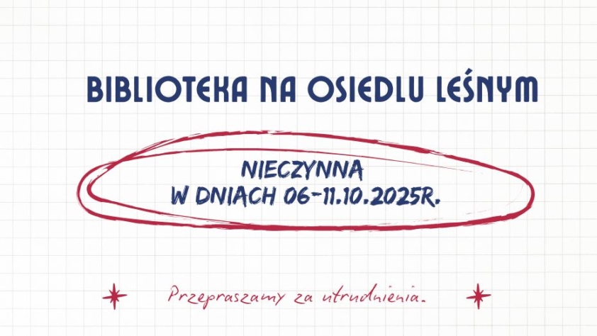Informujemy, że w dniach od 06-11.10.2025 roku biblioteka na Osiedlu…