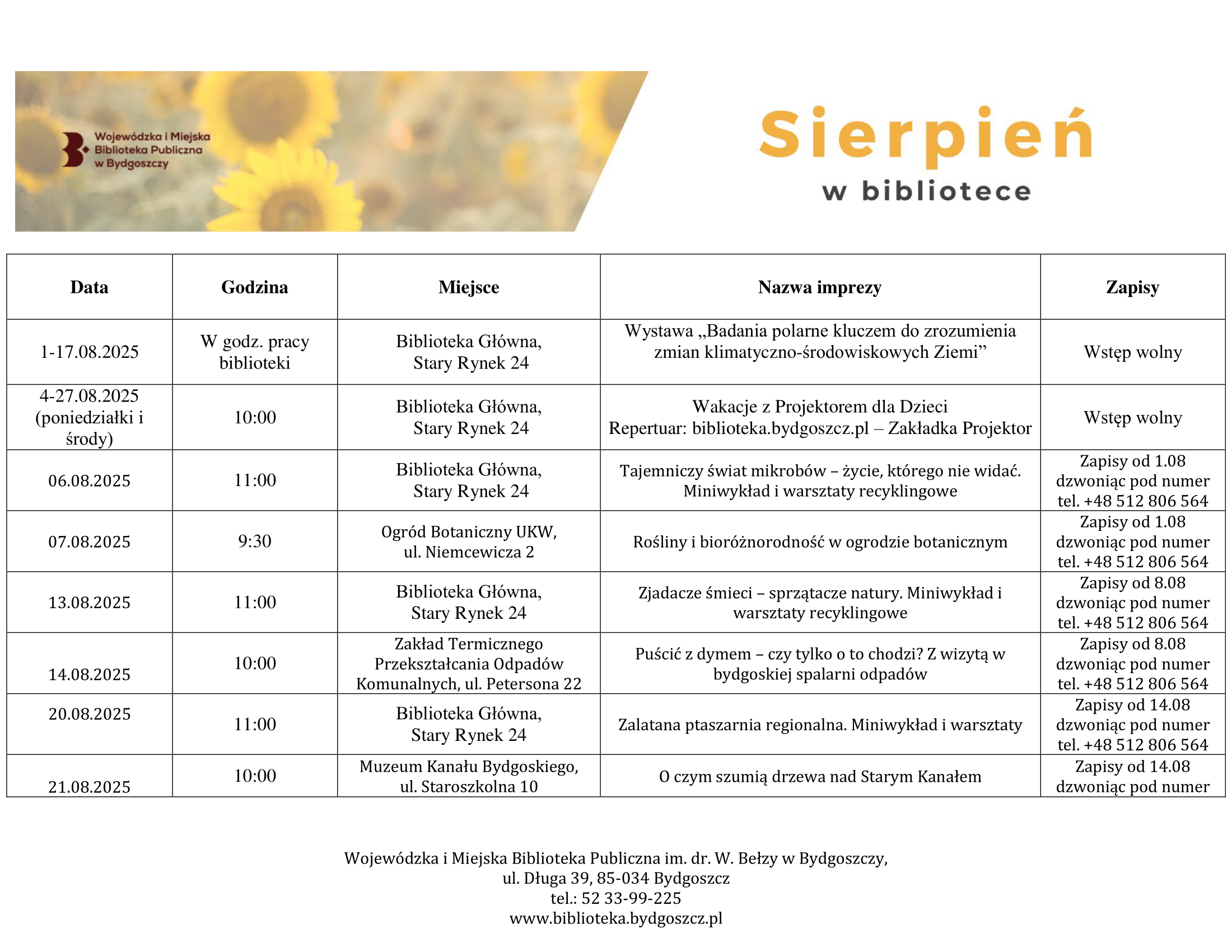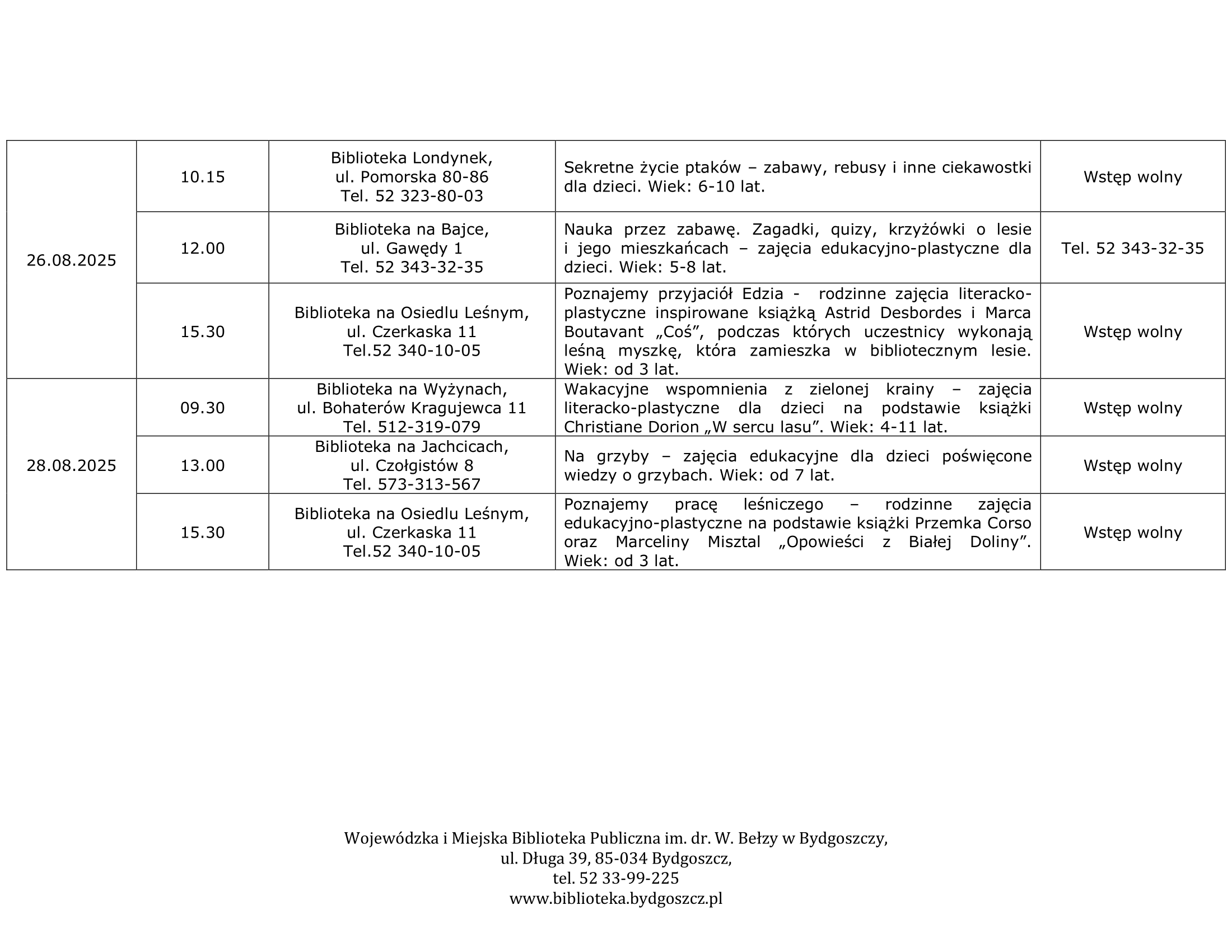 Wydarzenia – LISTOPAD 2025 Biblioteka Główna POBIERZ PDF ListopadPobierz POBIERZ PDF Imprezy Listopad 2025Pobierz Biblioteki osiedlowe Zajęcia edukacyjne w bibliotekach osiedlowych POBIERZ Tabela z imprezami na www – listopad 2025Pobierz ListopadPobierz