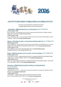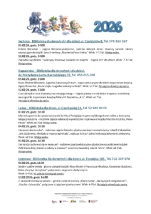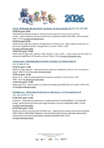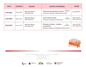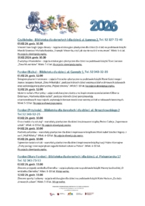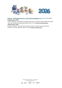 Zajęcia edukacyjne w bibliotekach osiedlowych POBIERZ – Tabela z imprezami w bibliotekach osiedlowych – luty 2026 POBIERZ – Zajęcia dla dzieci z Ukrainy – luty 2026 Biblioteki osiedlowe