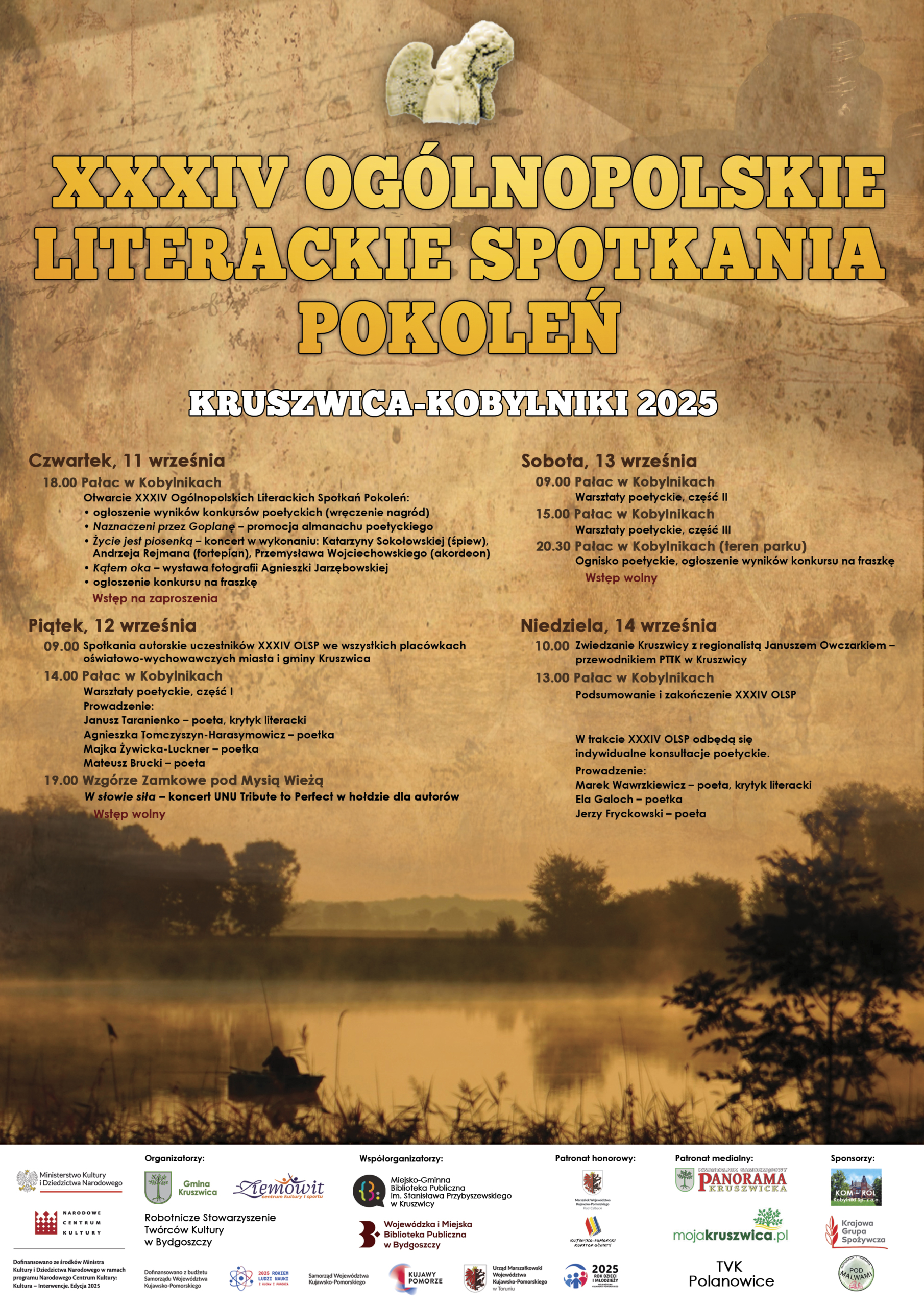W ramach współpracy z Robotniczym Stowarzyszeniem Twórców Kultury w Bydgoszczy pragniemy poinformować, ze w Kruszwicy-Kobylnikach w najbliższych dniach odbędą się XXXIV Ogólnopolskie Literackie Spotkania Pokoleń.